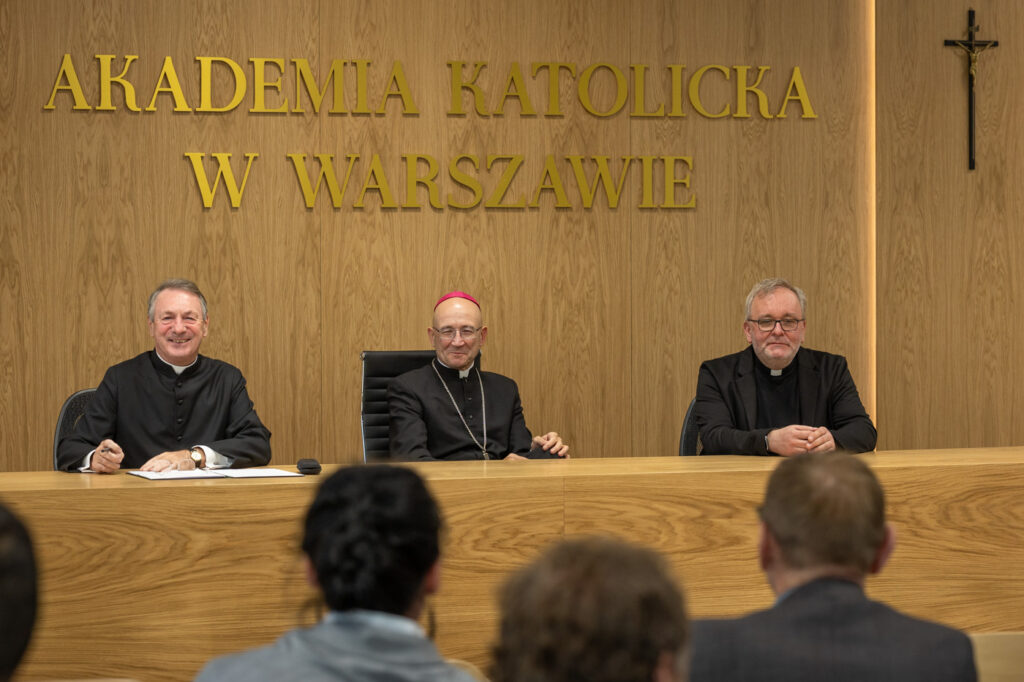 W dniu 21 października na Akademii Katolickiej w Warszawie przy ul. Dewajtis 3 odbyło się spotkanie ks. Arcybiskupa Adriana Galbasa z profesorami i pracownikami obu collegiów naszej uczelni. Na początku ks. Arcybiskup dokonał poświęcenia nowych i nowo wyremontowanych pomieszczeń dydaktycznych. Ksiądz Rektor dziękował za szczególne zaangażowanie w te prace ks. dr Januszowi Stańczukowi oraz Panu dr Sławomirowi Krzemińskiemu. Następnie wszyscy zgromadzili się w Małej Auli, gdzie zebrani krótko przedstawiali Wielkiemu Kanclerzowi AKW staż i charakter swojej pracy.